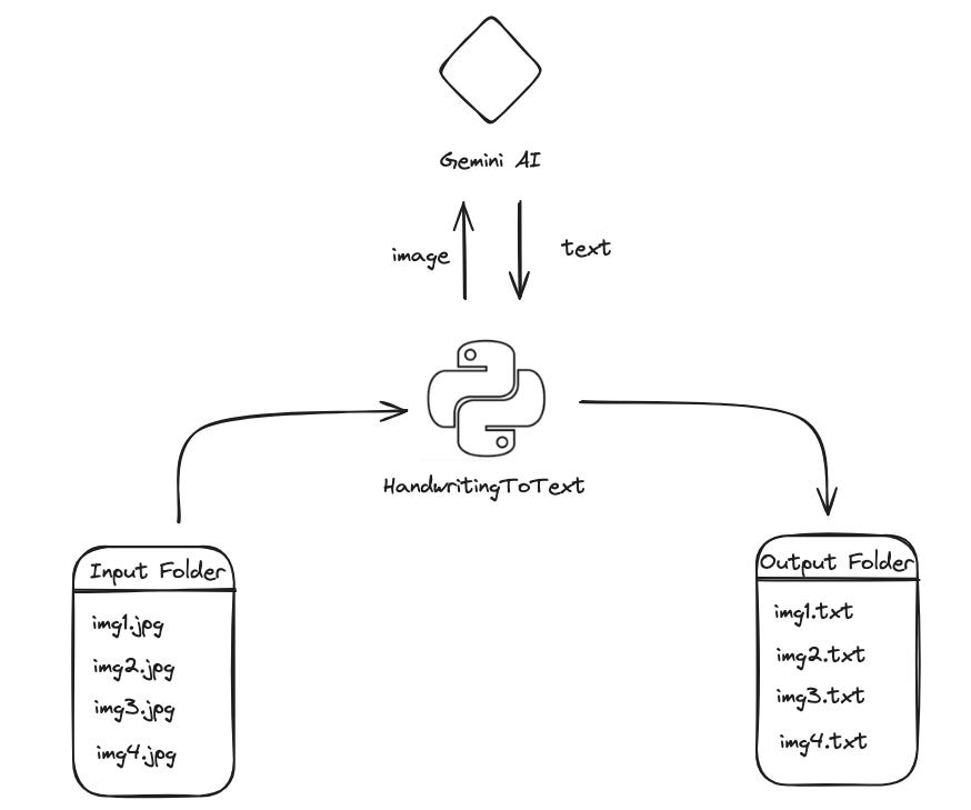 We’ll explore the handwritten text extraction capabilities of Gemini AI using the ‘Vision Pro’ model. Our approach involves creating a Python application that reads handwritten images from one folder (input) and writes the converted text files to another folder (output).