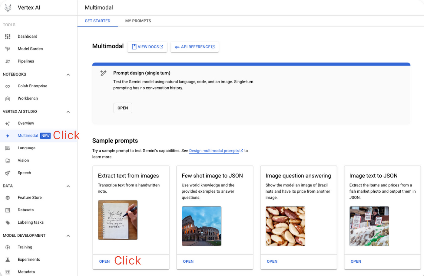 Click on ‘Multimodal’, and then on the ‘Extract text from images’ panel.
